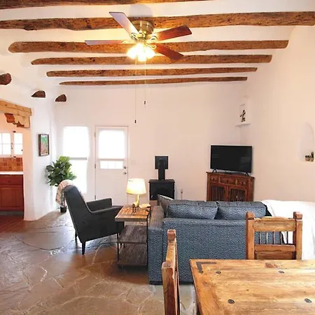 The 3-bedroom Santa Fe Sanctuary With Views At Every Turn villa offers proximity to nearby tourist spots, such as Que Sera Alpacas, situated about 2 miles away.